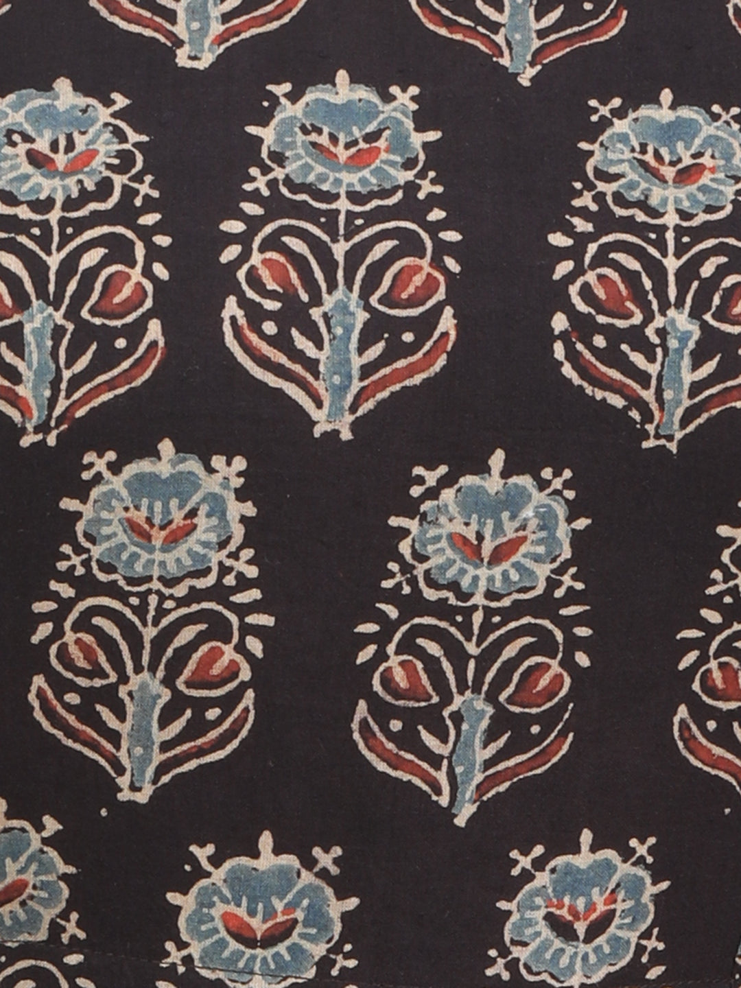| Black ajrakh block printed, non-padded Saree Blouse has round neck side zipper closure with 3/4 sleeves |