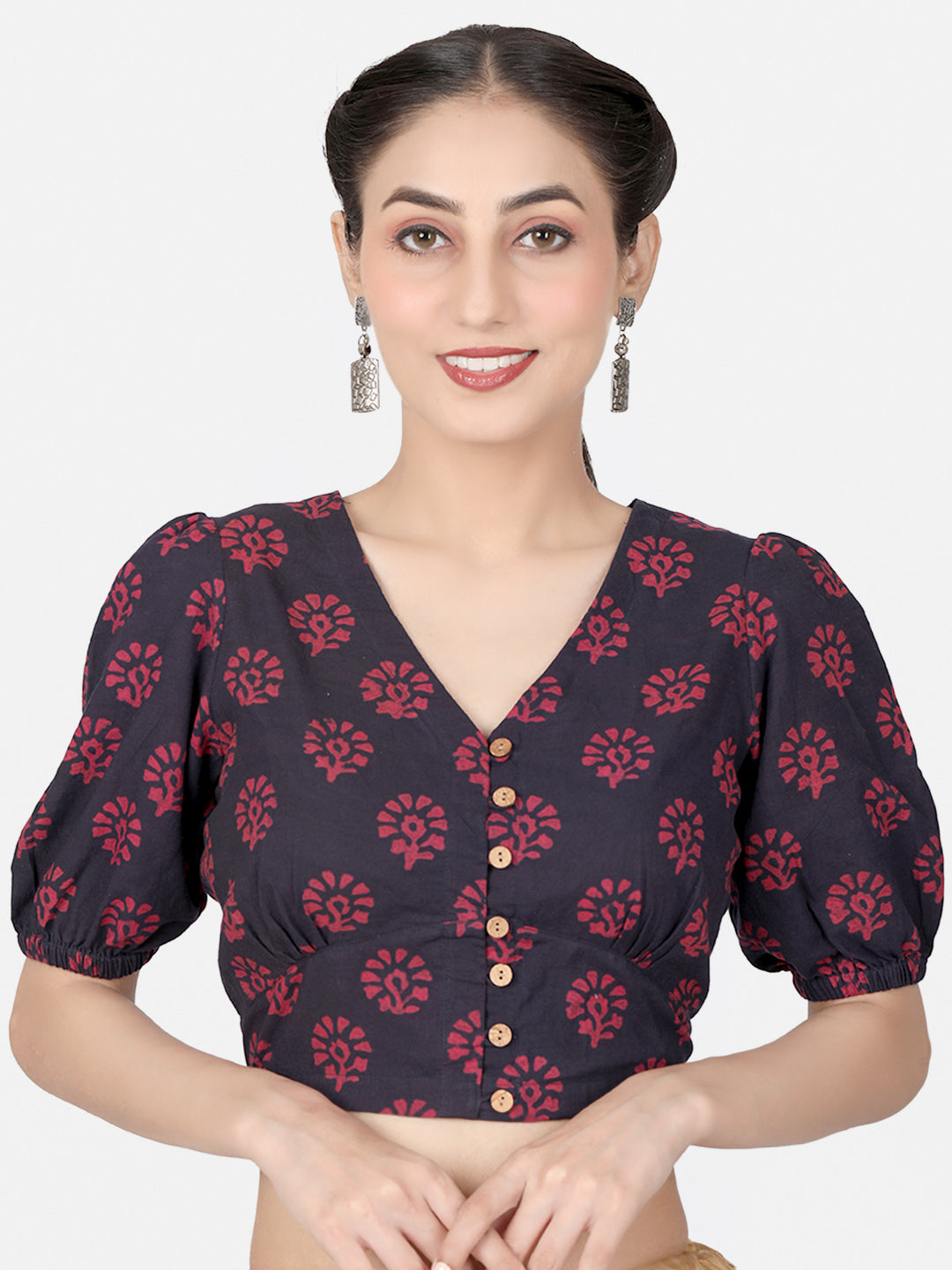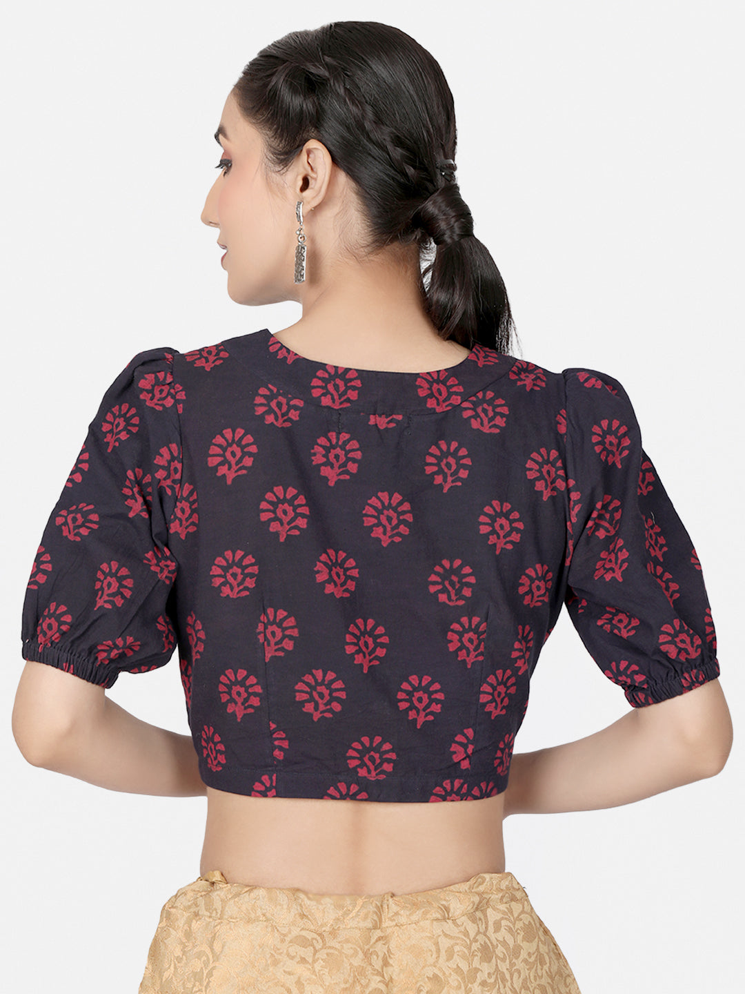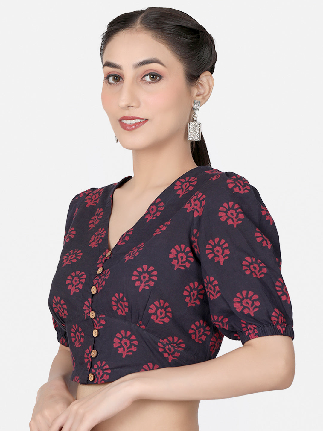 Maroon Block Printed Cotton Non-Padded Saree Blouse — a perfect blend of traditional charm and contemporary style.