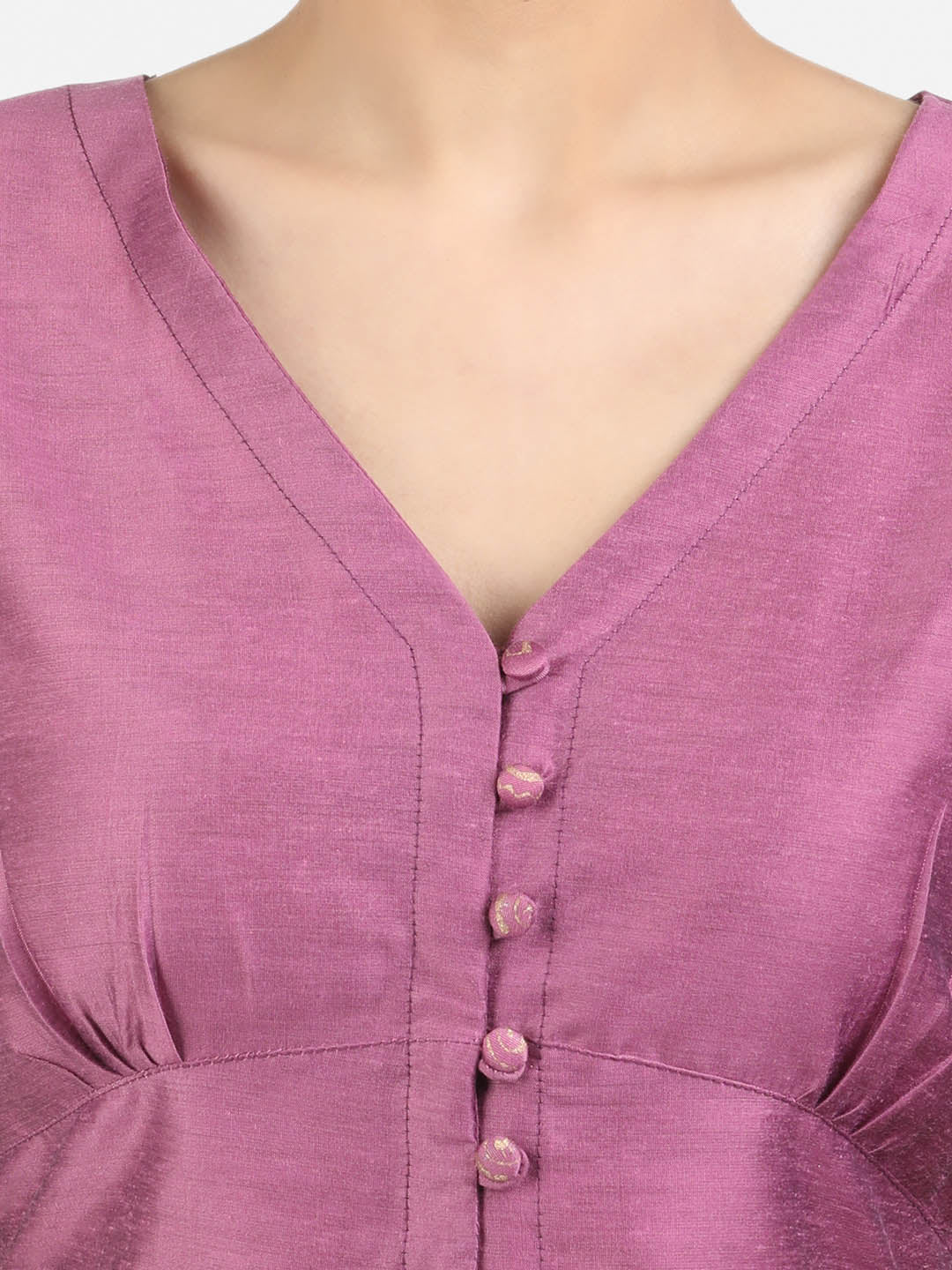 Women Solid Purple Art Silk Non Padded Saree Blouse has V Neck Front Button Closure with Short Sleeves